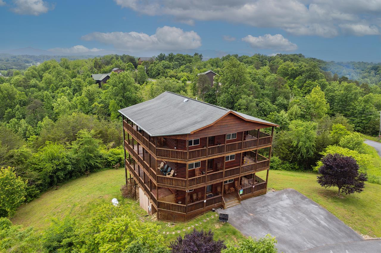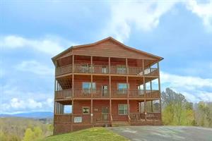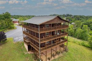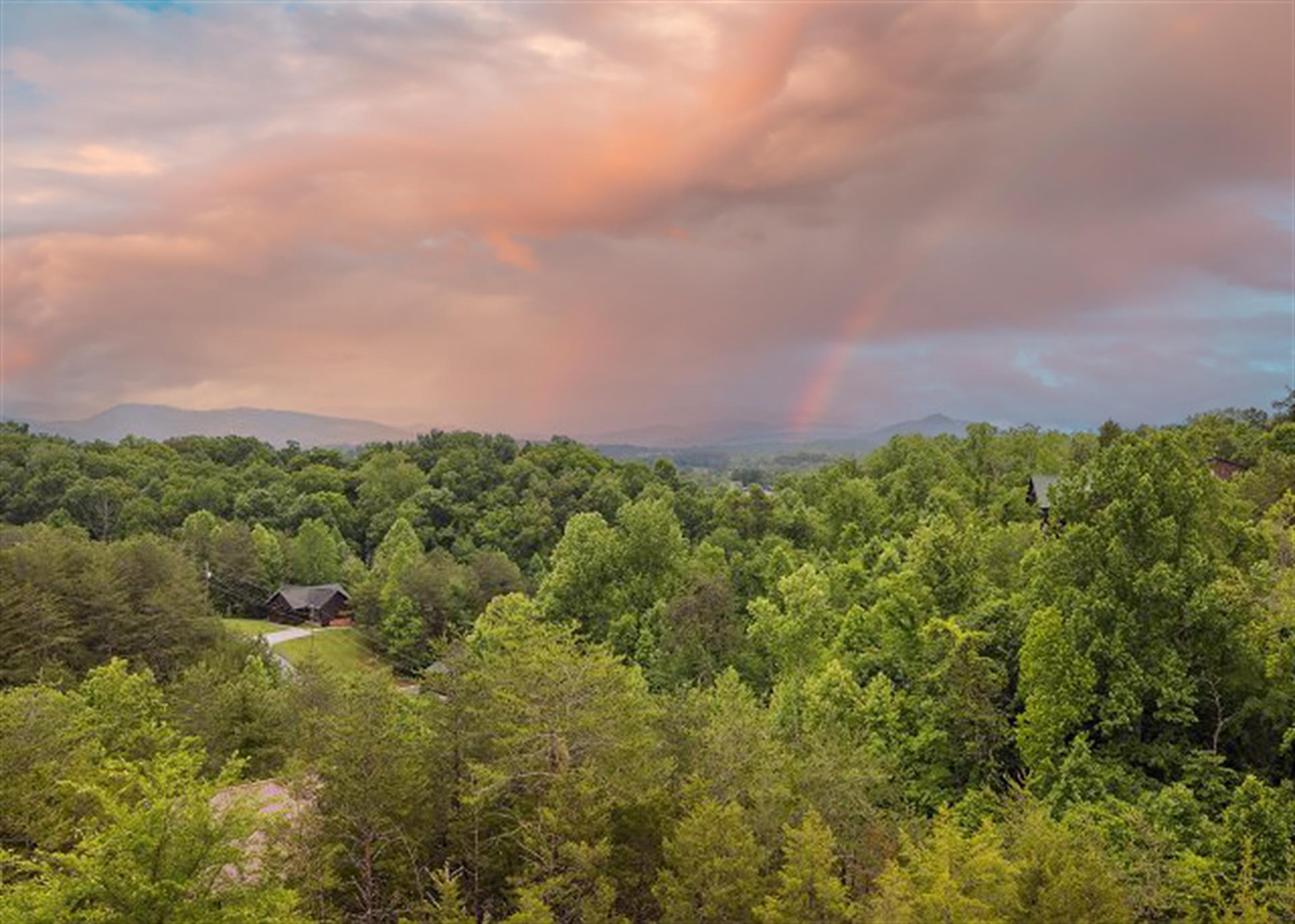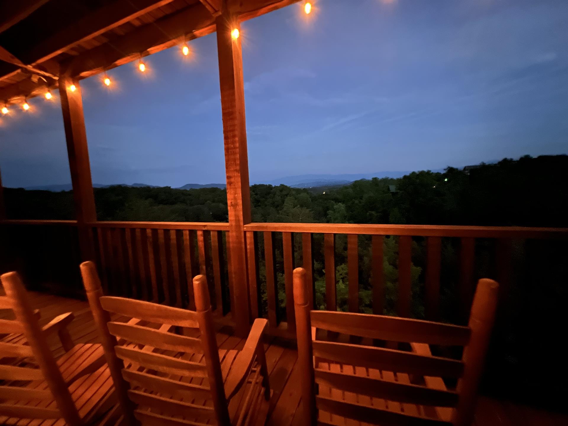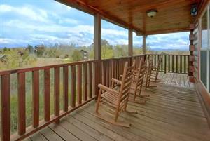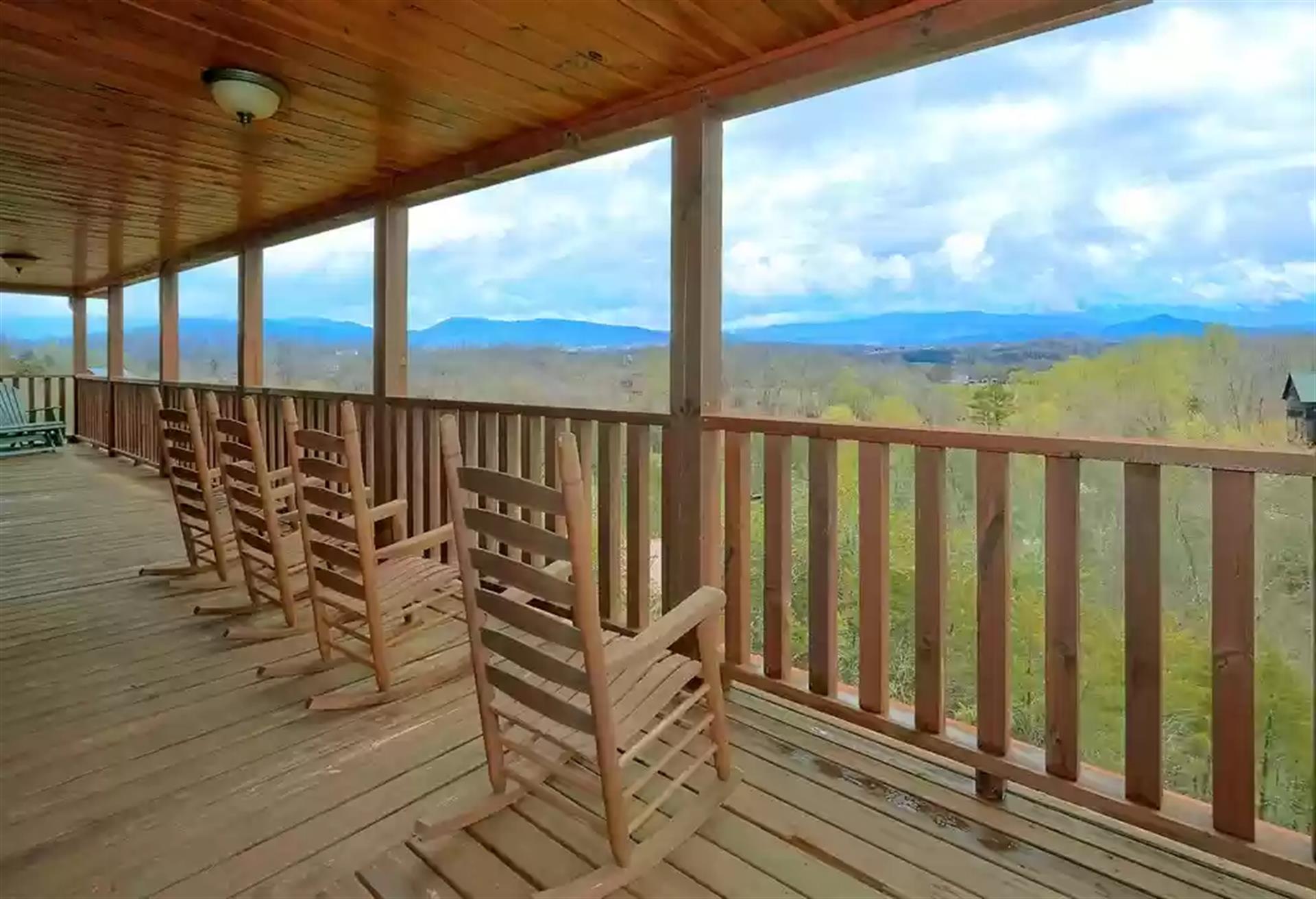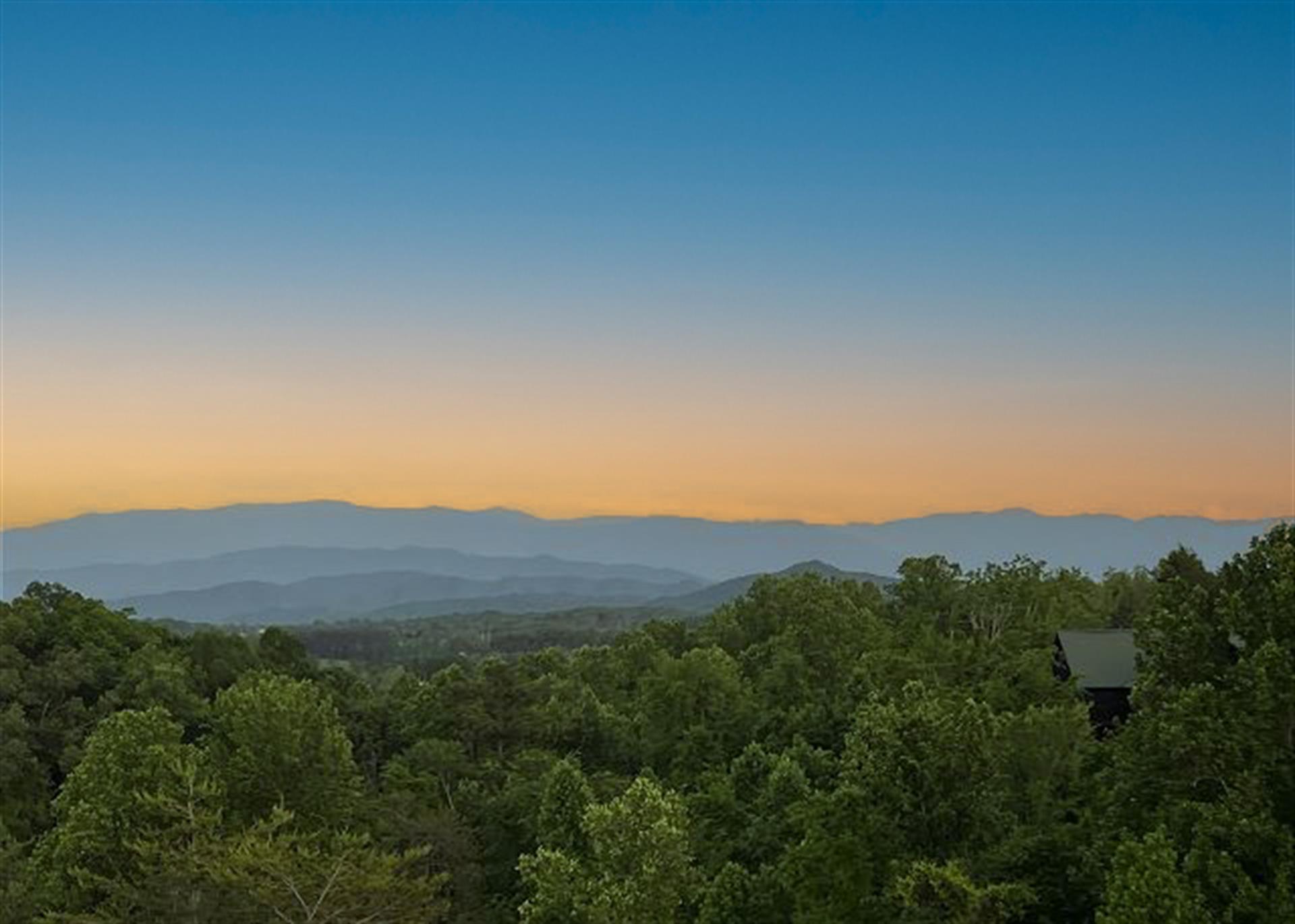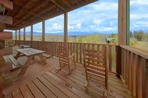 Rocky Top Views is an incredible Smoky Mountain cabin that offers an ideal setting for hosting family reunions, retreats, and getaways with friends. This cabin has three stories, each with a wraparound porch that offers a magnificent panoramic view of the Great Smoky Mountains. Breathtaking sunrises from the back porch each morning come complimentary with this cabin! And the sunset is just as spectacular!