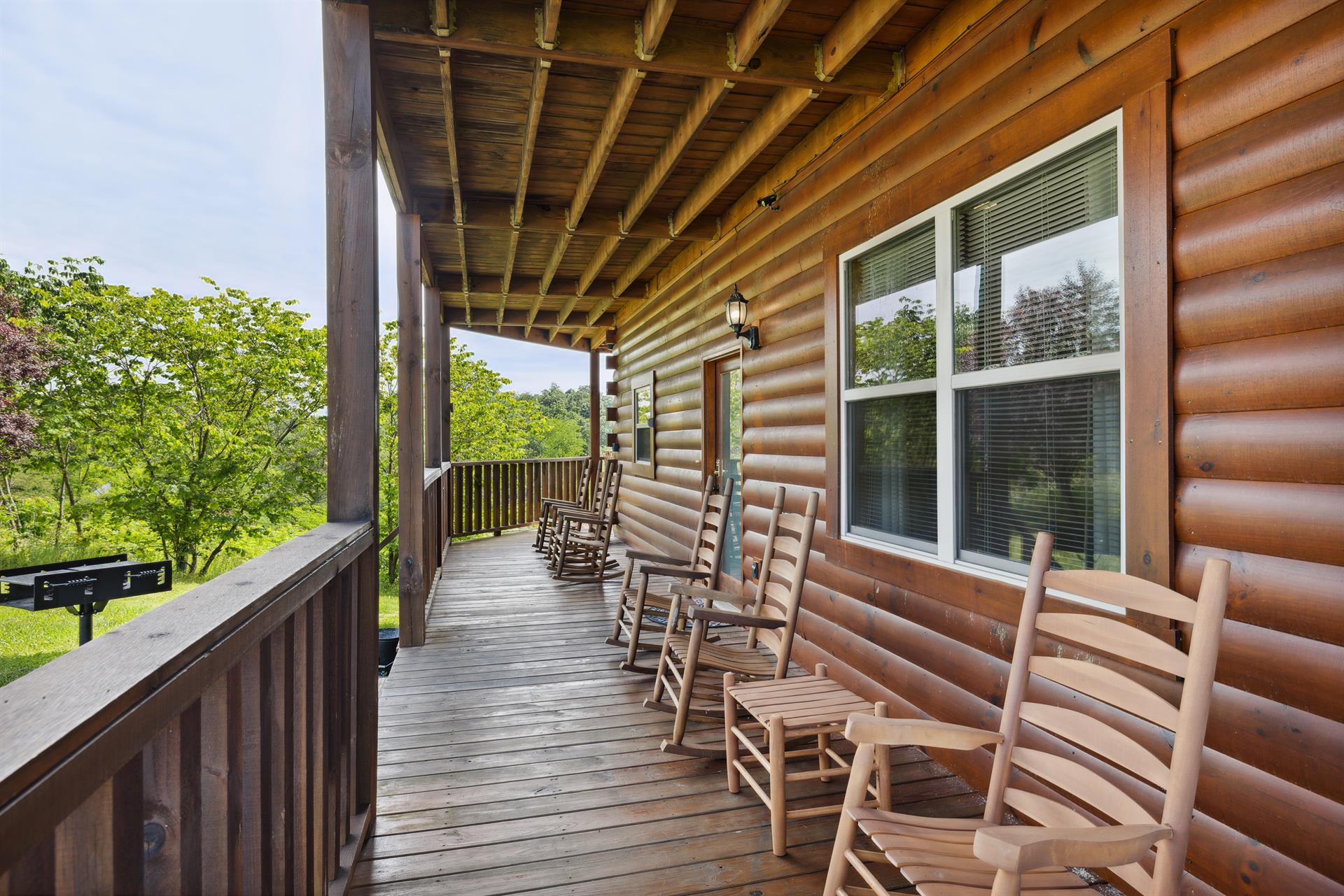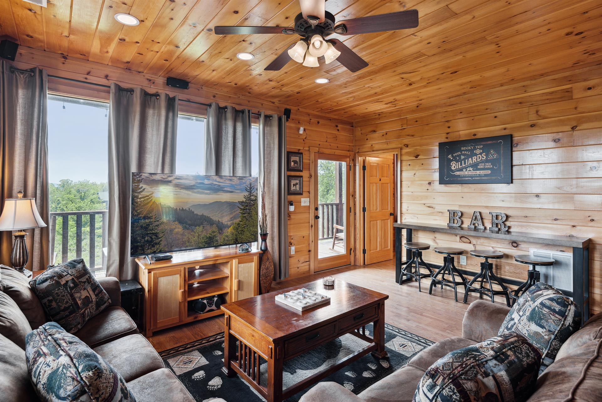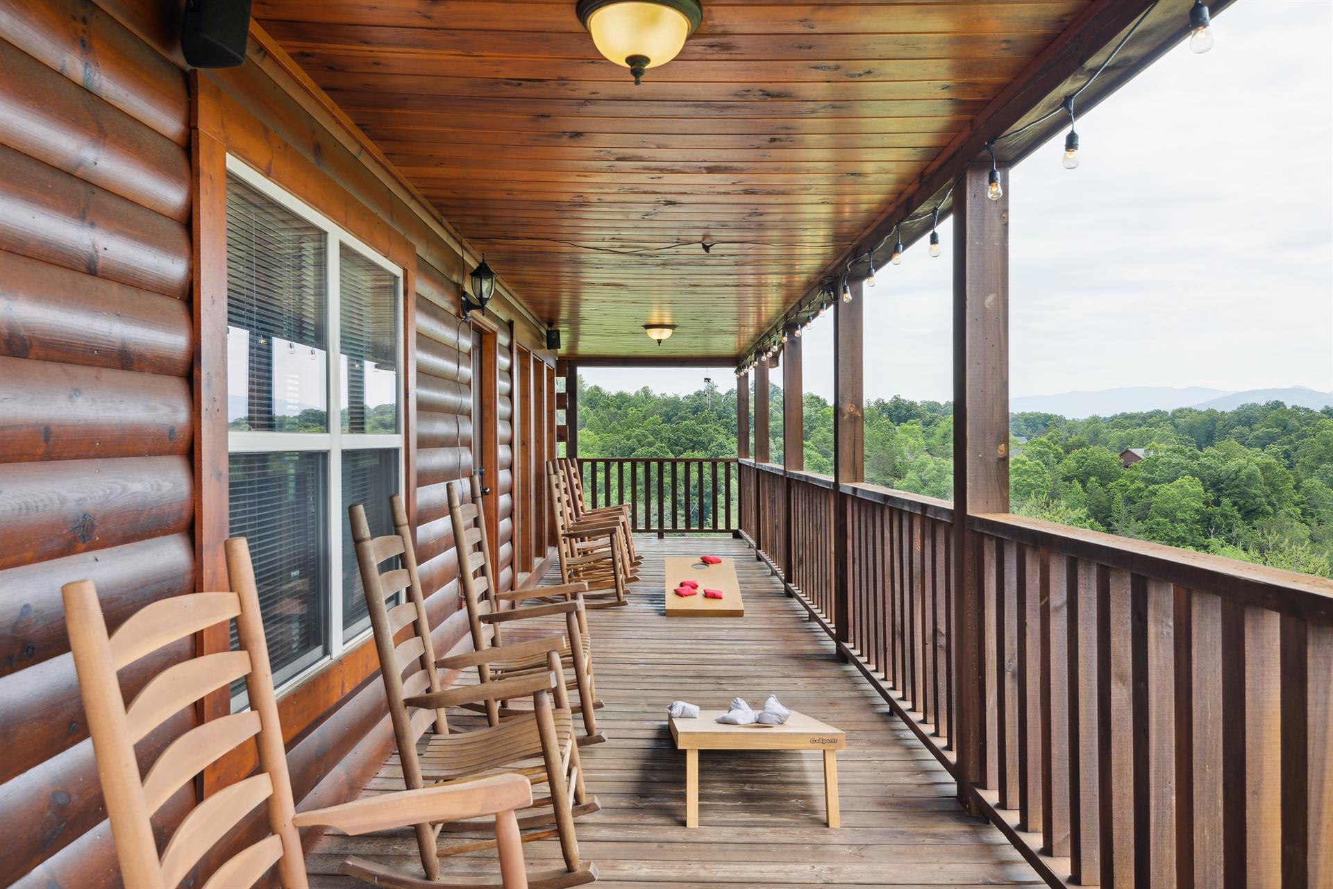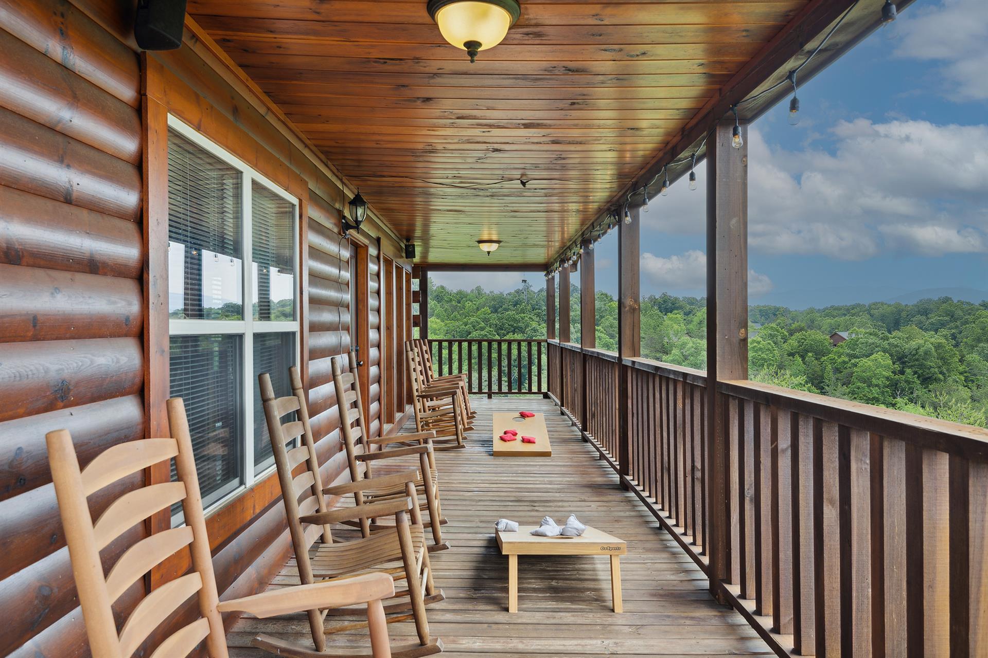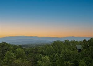 Rocky Top Views is an incredible Smoky Mountain cabin that offers an ideal setting for hosting family reunions, retreats, and getaways with friends. This cabin has three stories, each with a wraparound porch that offers a magnificent panoramic view of the Great Smoky Mountains. Breathtaking sunrises from the back porch each morning come complimentary with this cabin! And the sunset is just as spectacular!