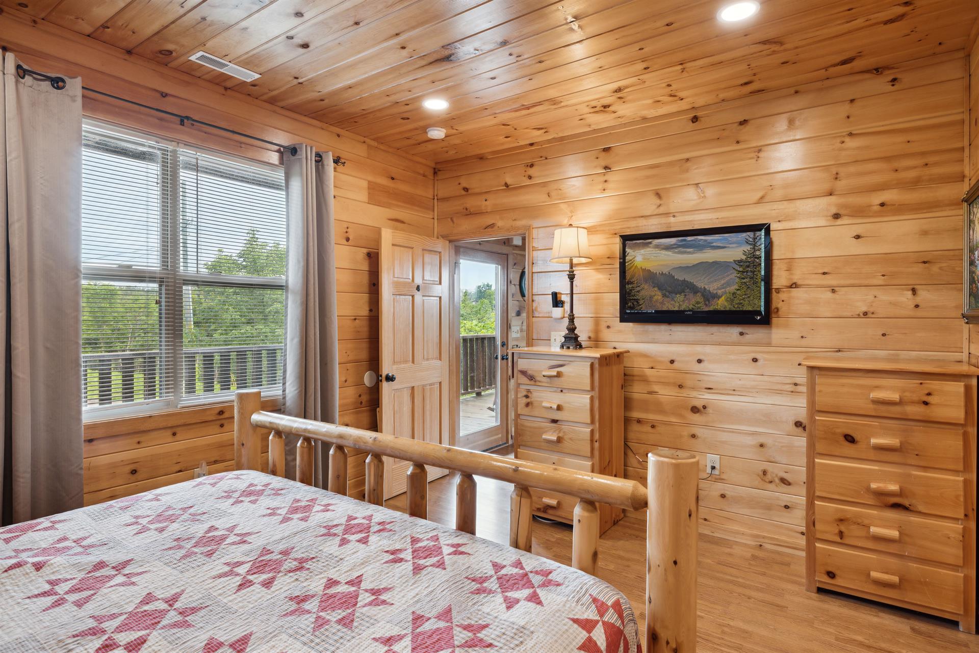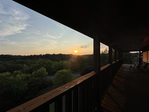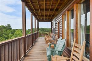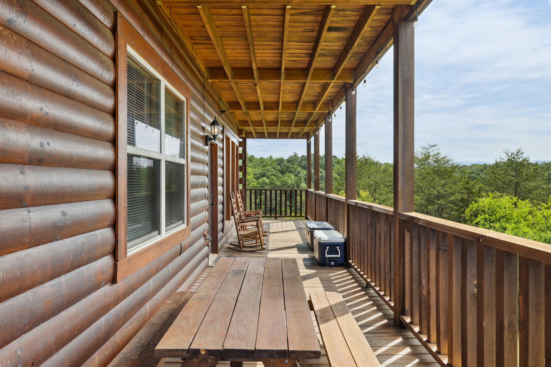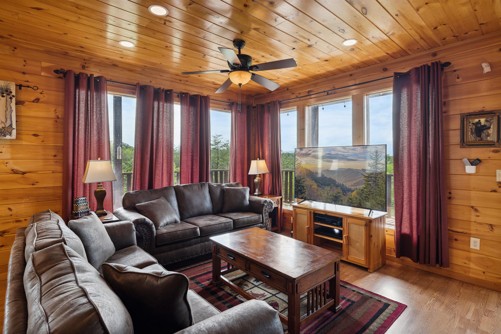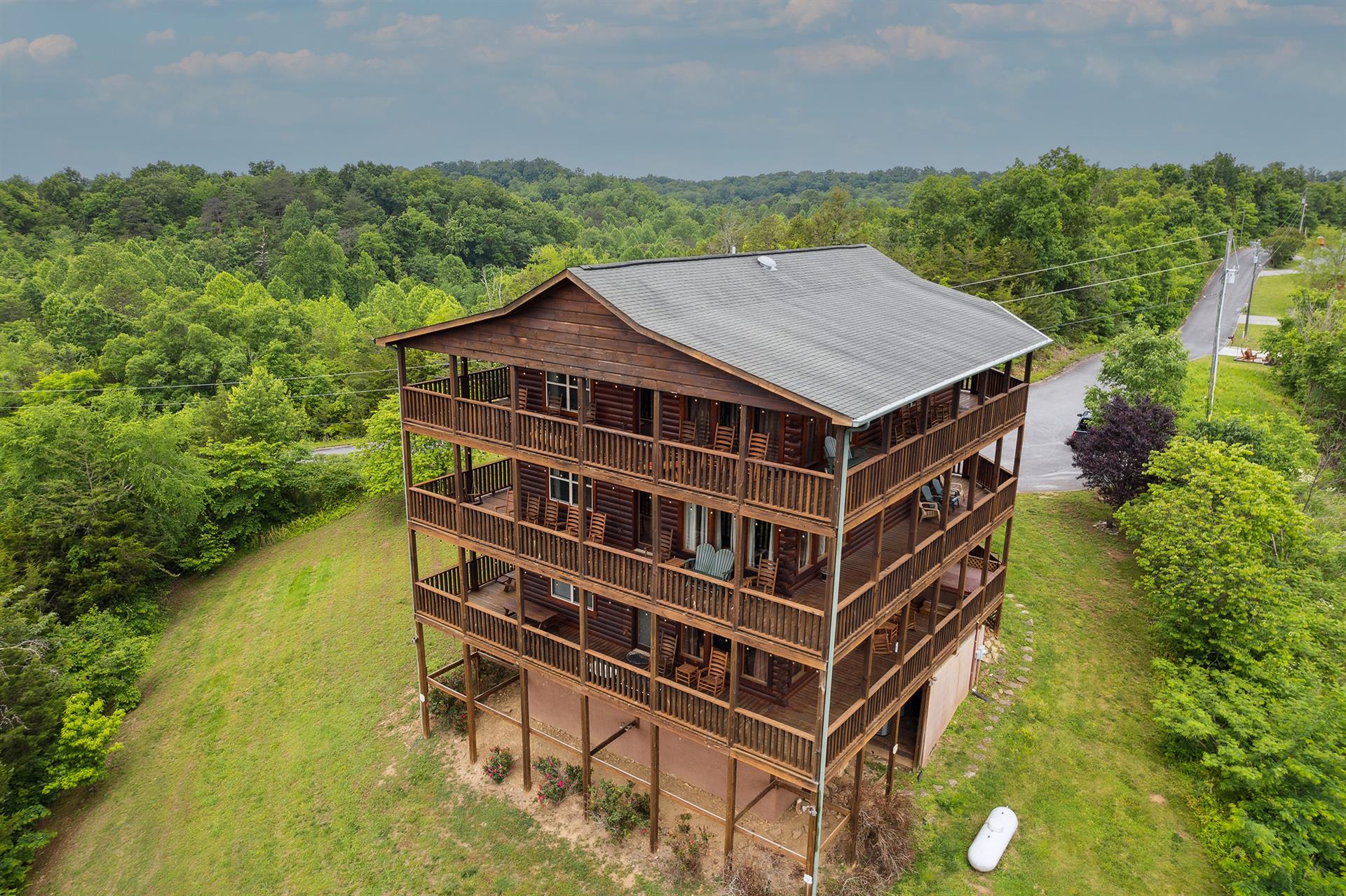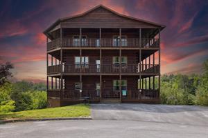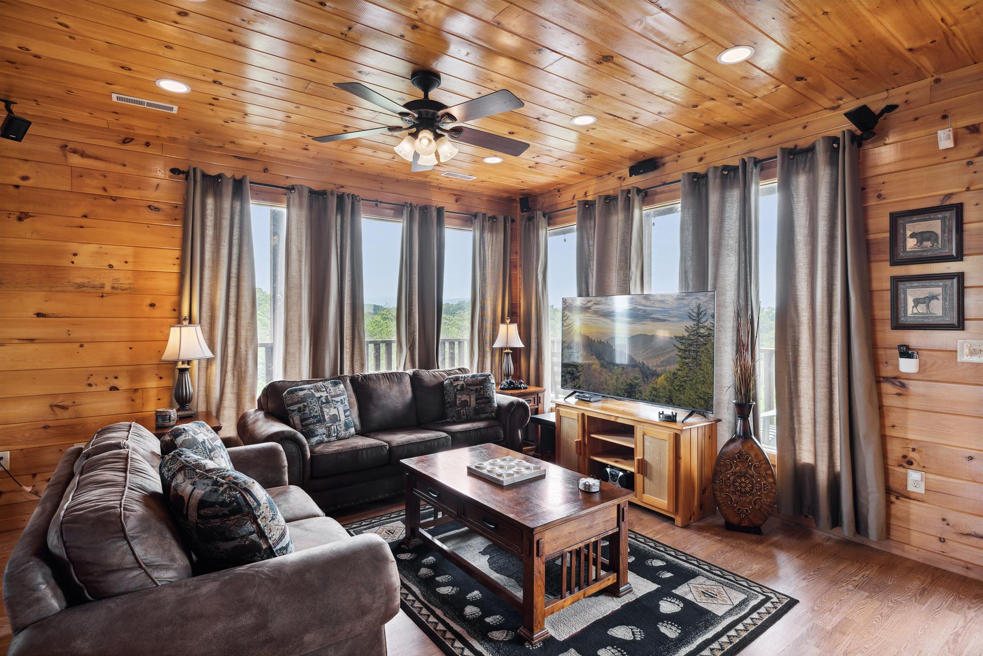 Rocky Top Views is an incredible Smoky Mountain cabin that offers an ideal setting for hosting family reunions, retreats, and getaways with friends. This cabin has three stories, each with a wraparound porch that offers a magnificent panoramic view of the Great Smoky Mountains. Breathtaking sunrises from the back porch each morning come complimentary with this cabin! And the sunset is just as spectacular!