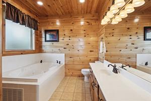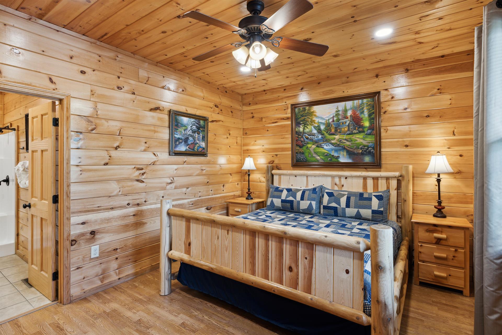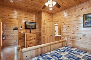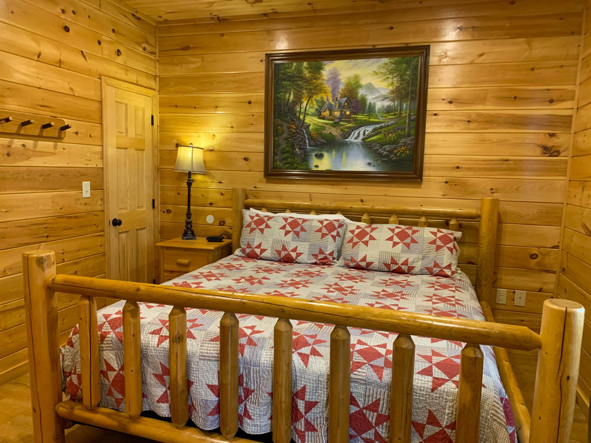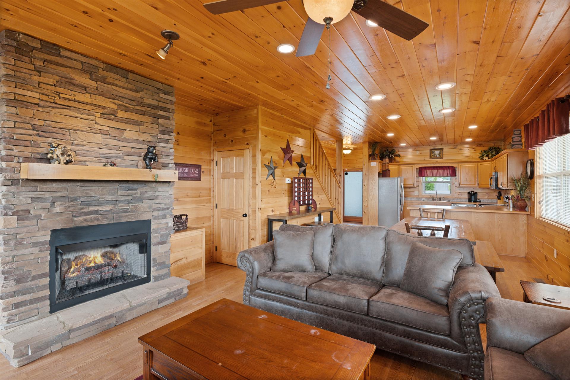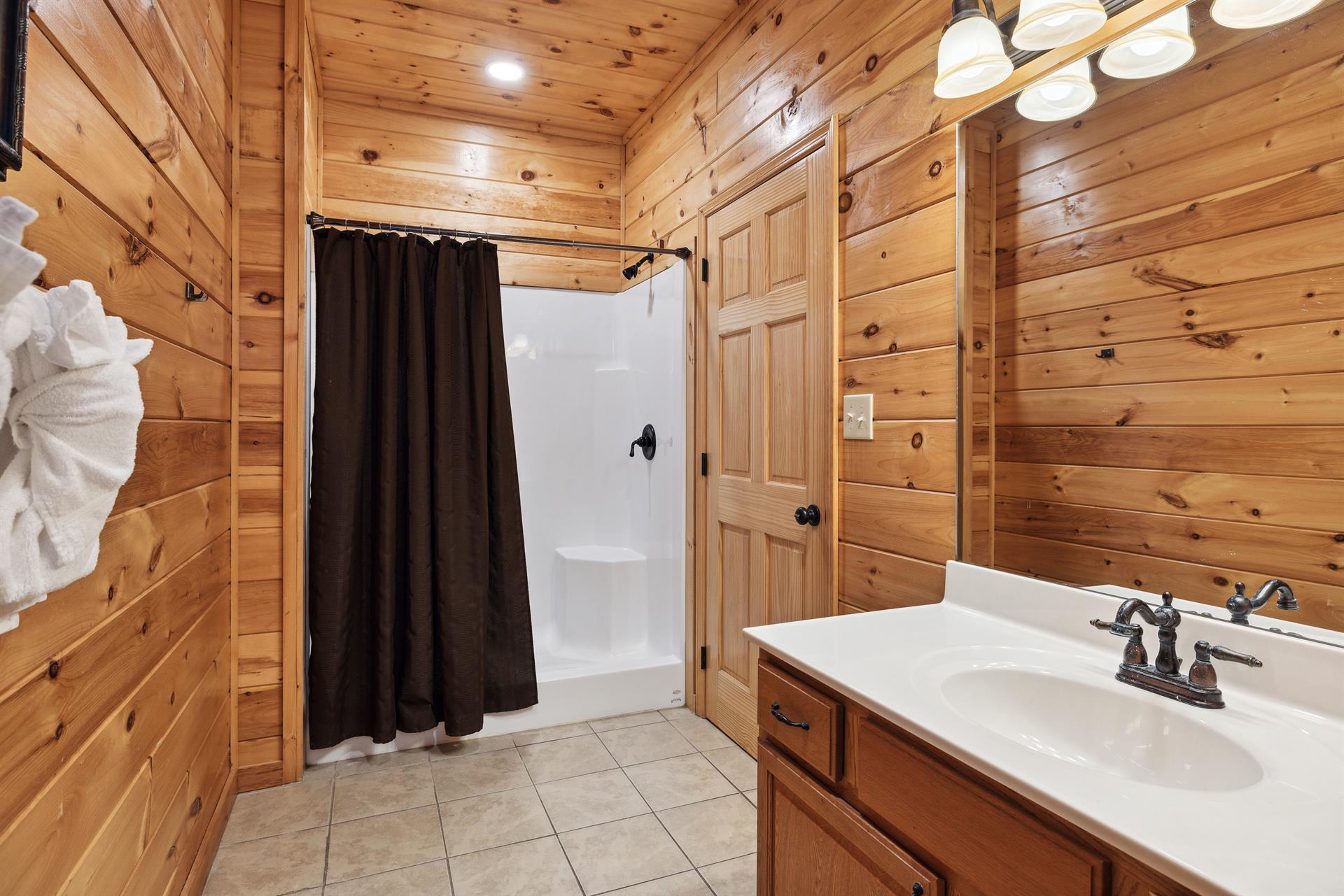 The cabin's three stories each feature two bedrooms with their own private bathroom, a comfortable living area with a sleeper sofa and TV, and a game room for endless entertainment. The main level of the cabin includes a fully equipped kitchen and dining area, perfect for preparing and sharing delicious meals with loved ones. The second level has a pool table, poker table, living area with large TV. The 3 floor is all about gaming! Brightly colored with 2 gaming chairs and TV's, the kids will never be bored. There are 2 queen over queen bunk beds in the game area, one king bedroom and one bedroom with queen over queen bunks and private baths. This cabin is professionally decorated with kids in mind! Enjoy the video arcade games and let the adults enjoy the poker table or hot tub.
