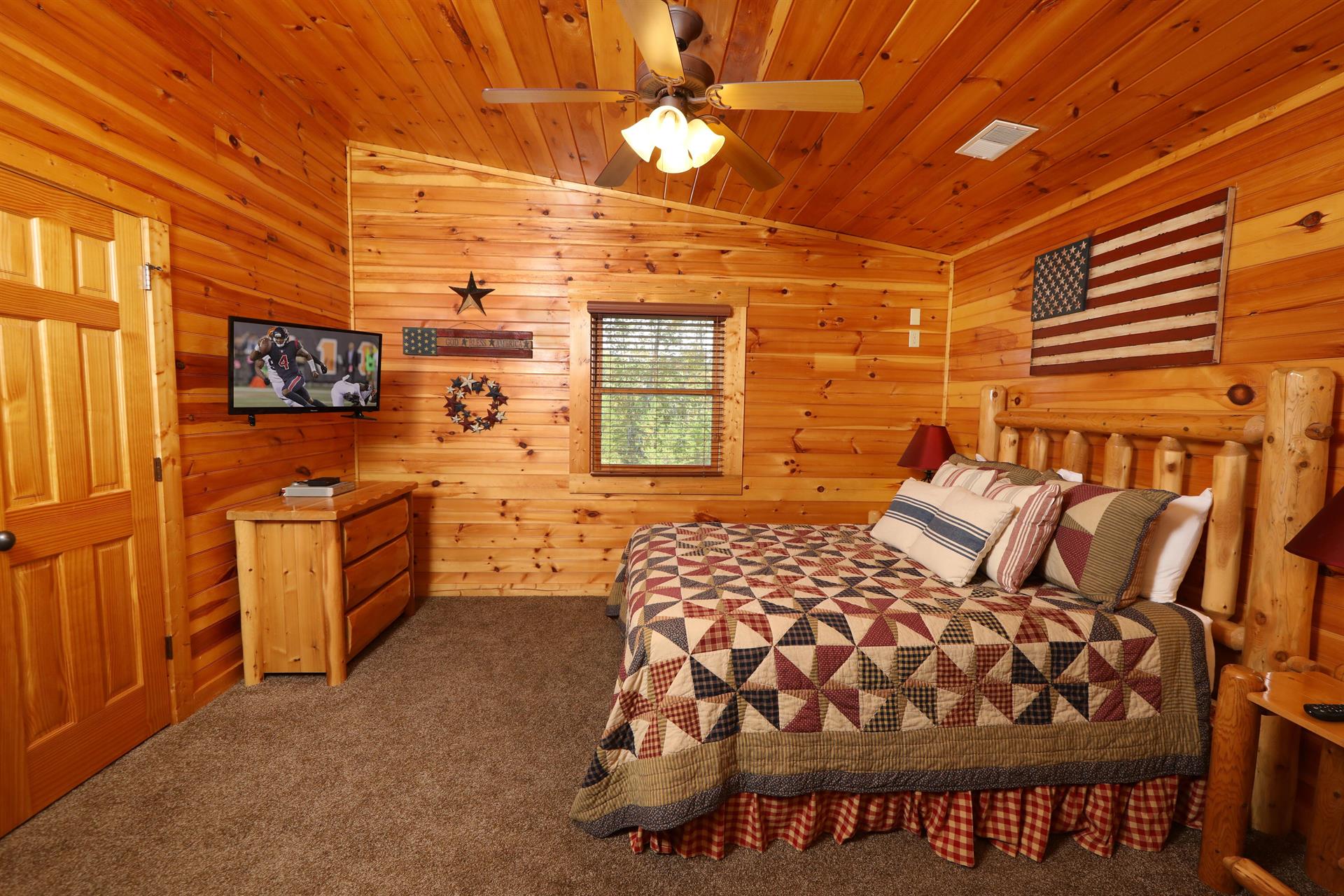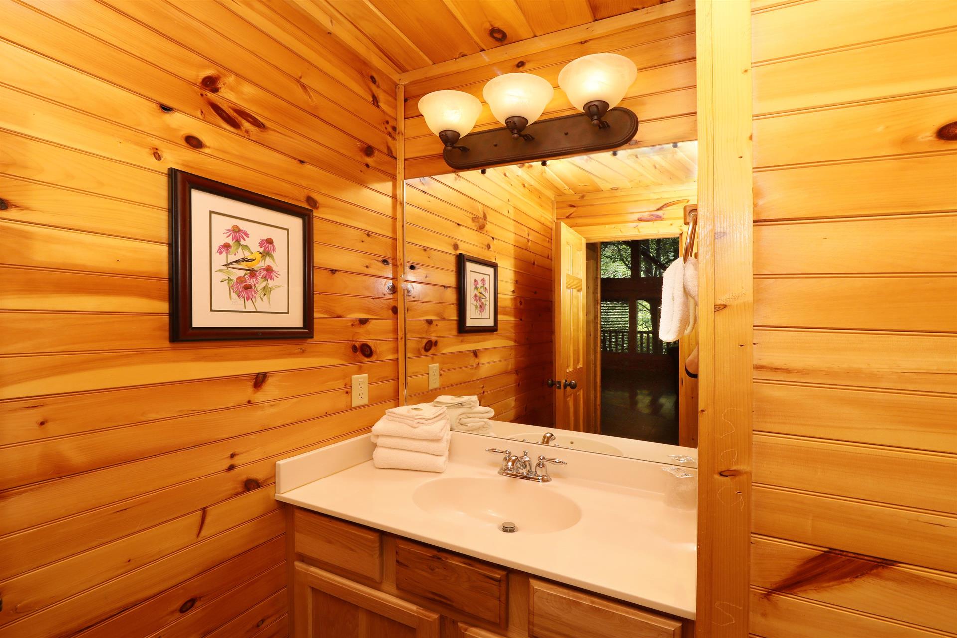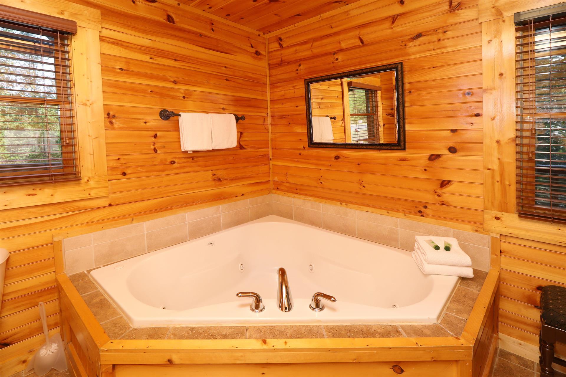 This gorgeous five bedroom cabin Smoky Bear Manor will suit your entire group.