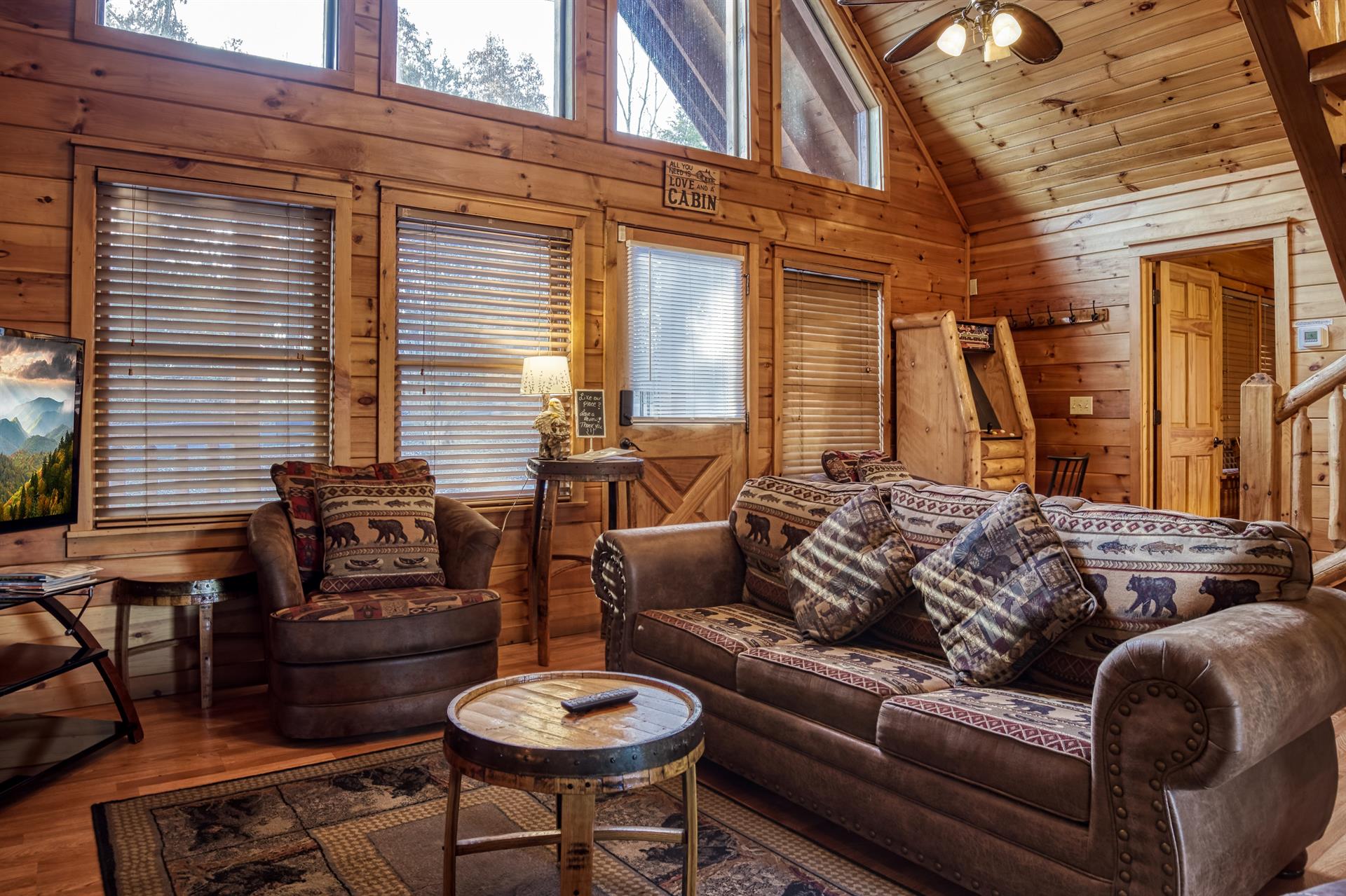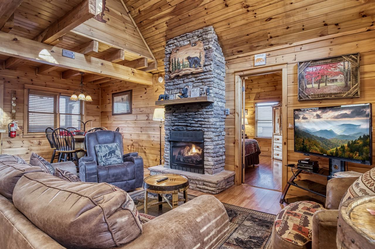 Upon entering your 2-bedroom cabin near Pigeon Forge, adorned with a rejuvenating hot tub, you'll be greeted by a welcoming living room, featuring plush furnishings, a television, and a cozy gas log fireplace – perfect for snug evenings during chilly winter nights. Regardless of the season, "Southern Style" will instantly feel like your home away from home.