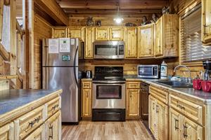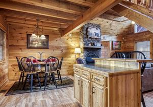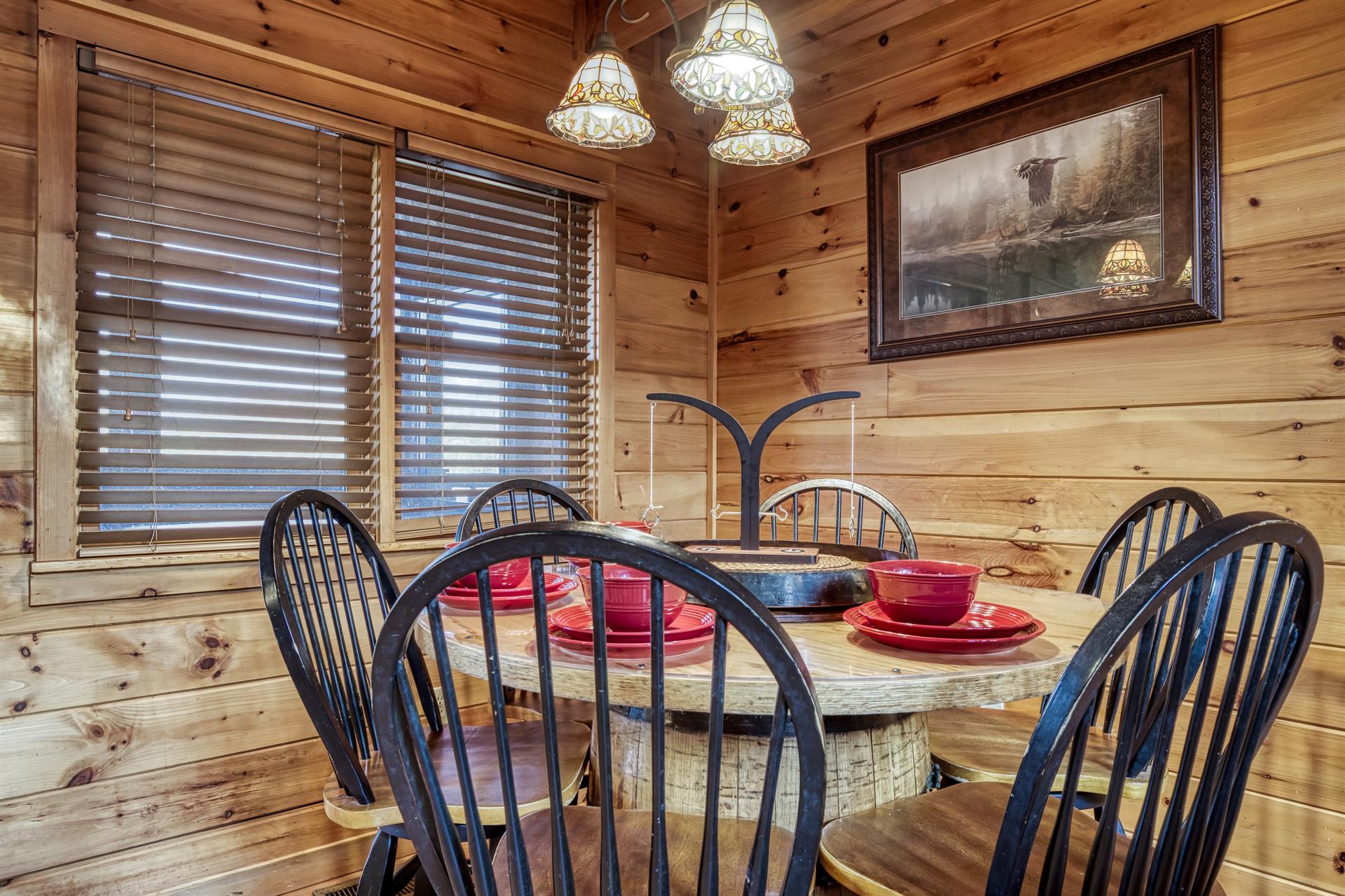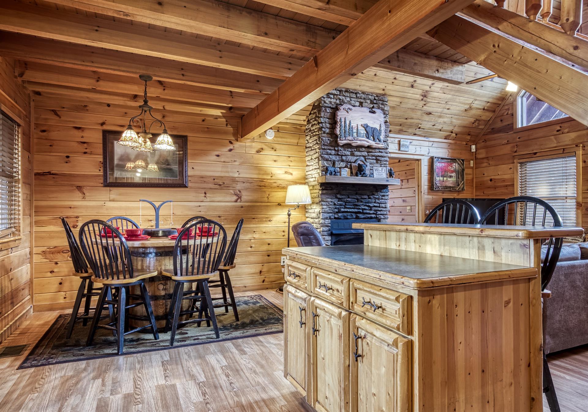 While a variety of Pigeon Forge and Sevierville restaurants lie in proximity, your well-appointed kitchen, boasting a breakfast bar and ample counter space, offers the perfect setting for savoring delectable meals within your cabin's inviting dining area. Alternatively, you can fire up the grill and relish a mountain cookout. Post-dinner, venture out to explore the endless wonders of the Smoky Mountains.