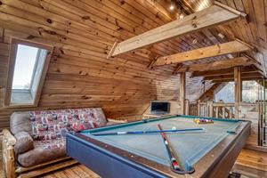 Indoors, the lofted game room, equipped with a pool table, promises hours of spirited competition. In addition to the opulent features, you'll also have access to practical amenities like Wi-Fi Internet and a washer/dryer, ensuring a seamlessly stress-free vacation experience.