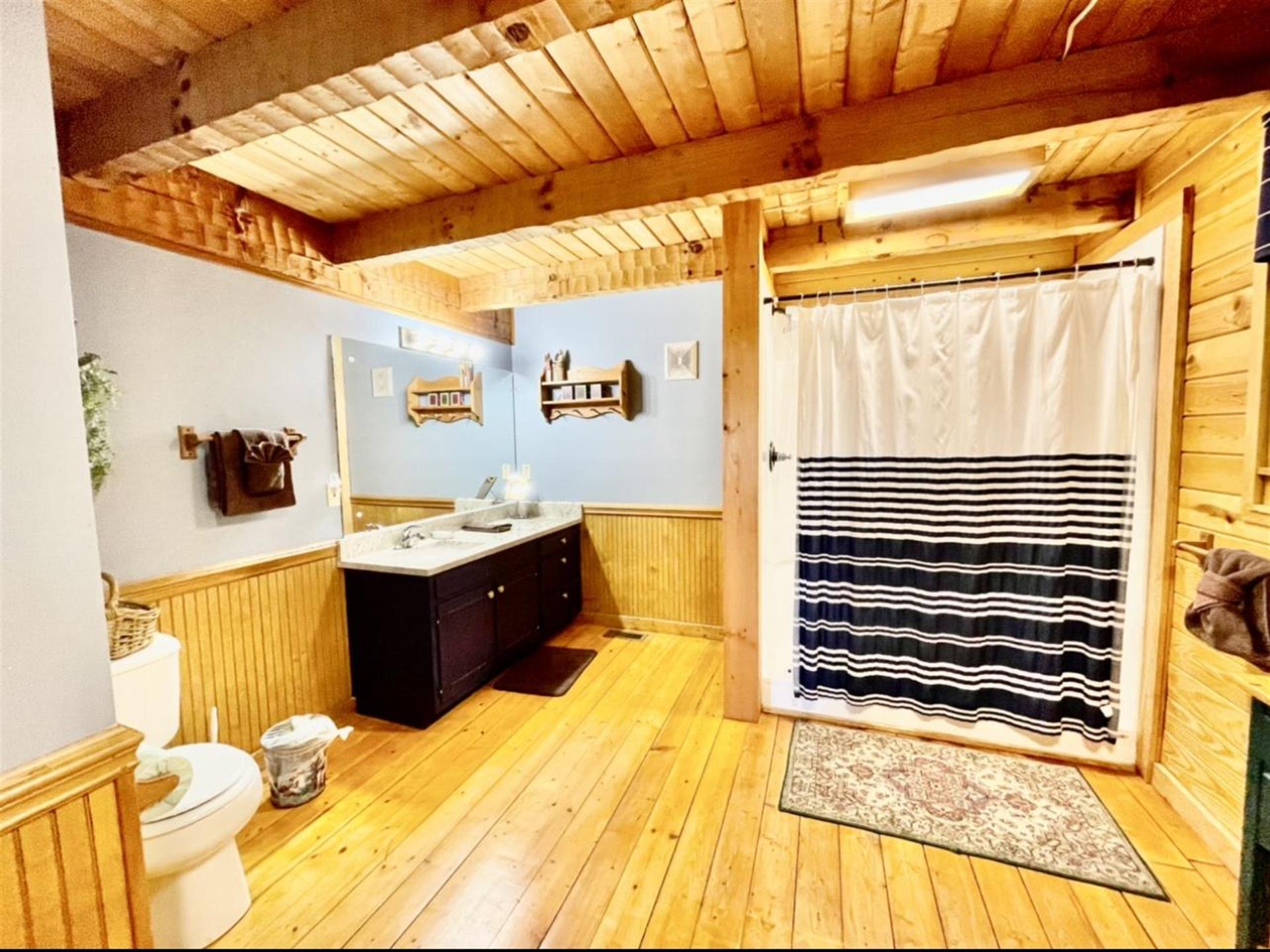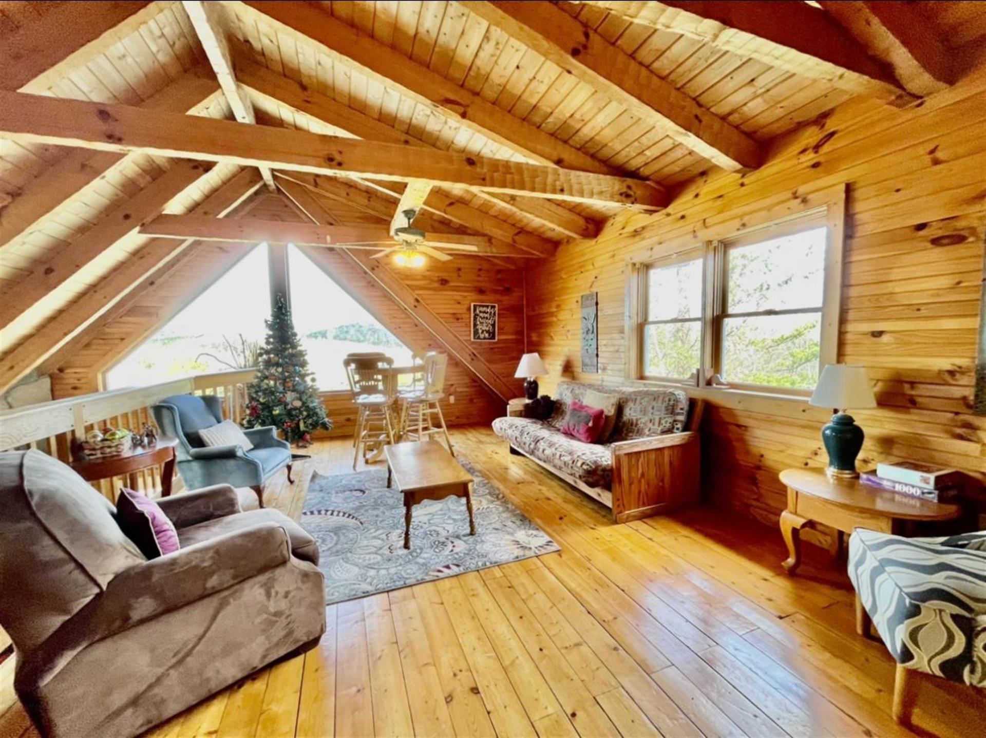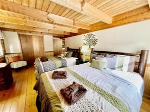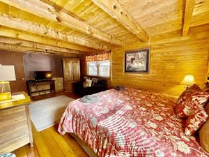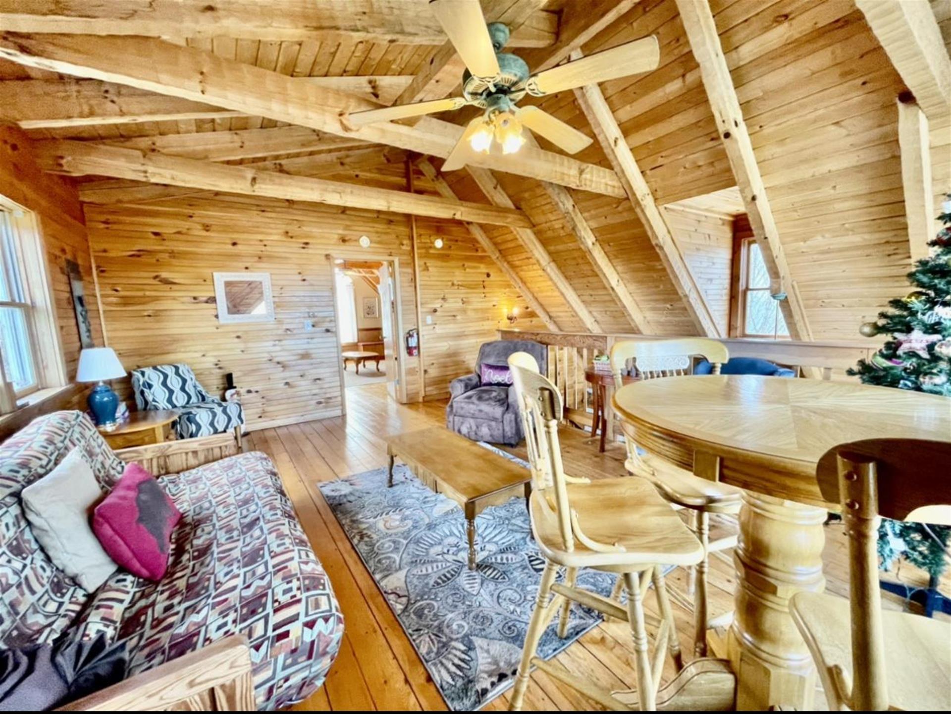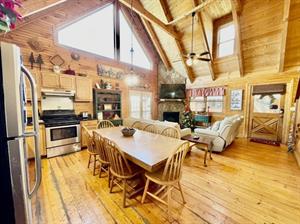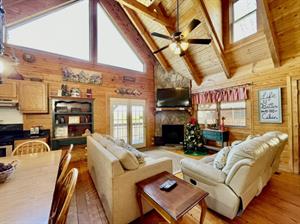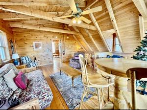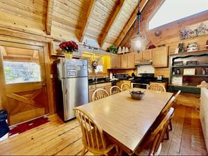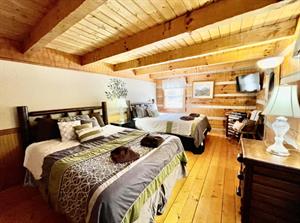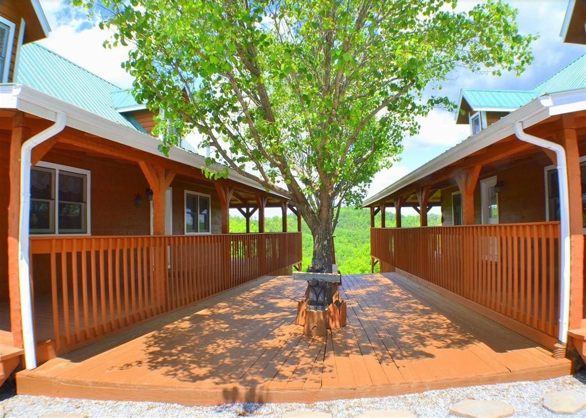 This property has two beautiful log cabins joined together by a tree covered