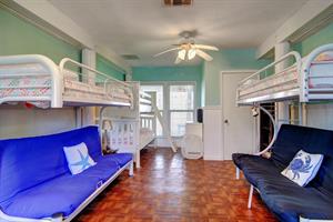 Ground level includes a big laundry room & covered patio! There are bunk beds
