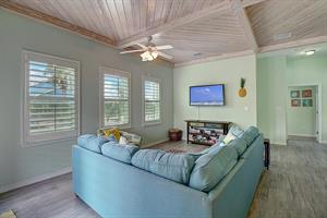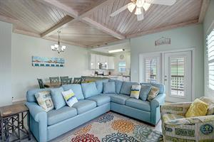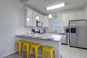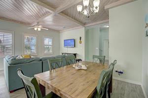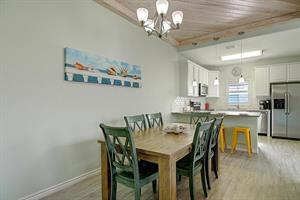 area boasts a coastal table with seating for 6 and the breakfast bar can seat
