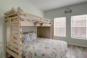 offers a twin over queen bunk bed and flat screen TV. Guests of this room have