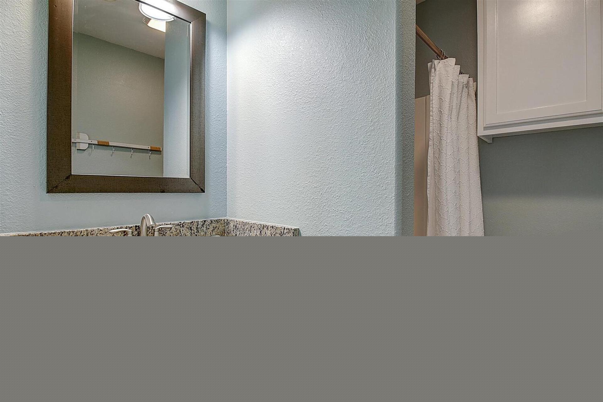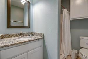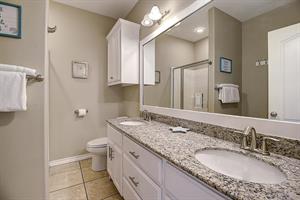 granite counter tops with a double vanity sink. Immerse yourself in the large