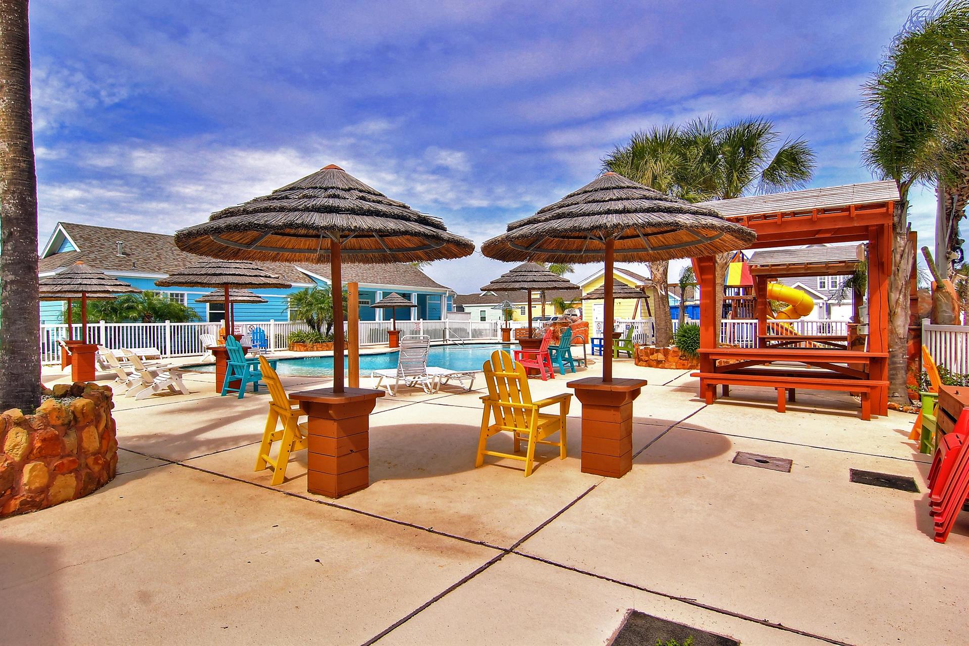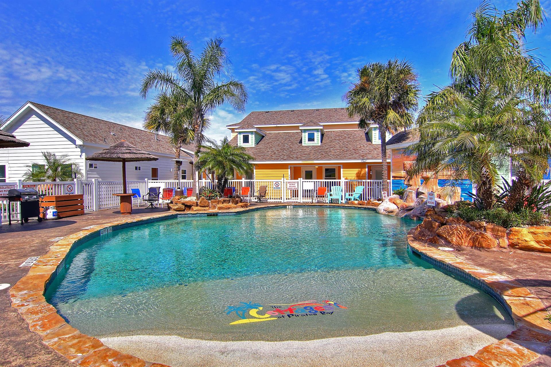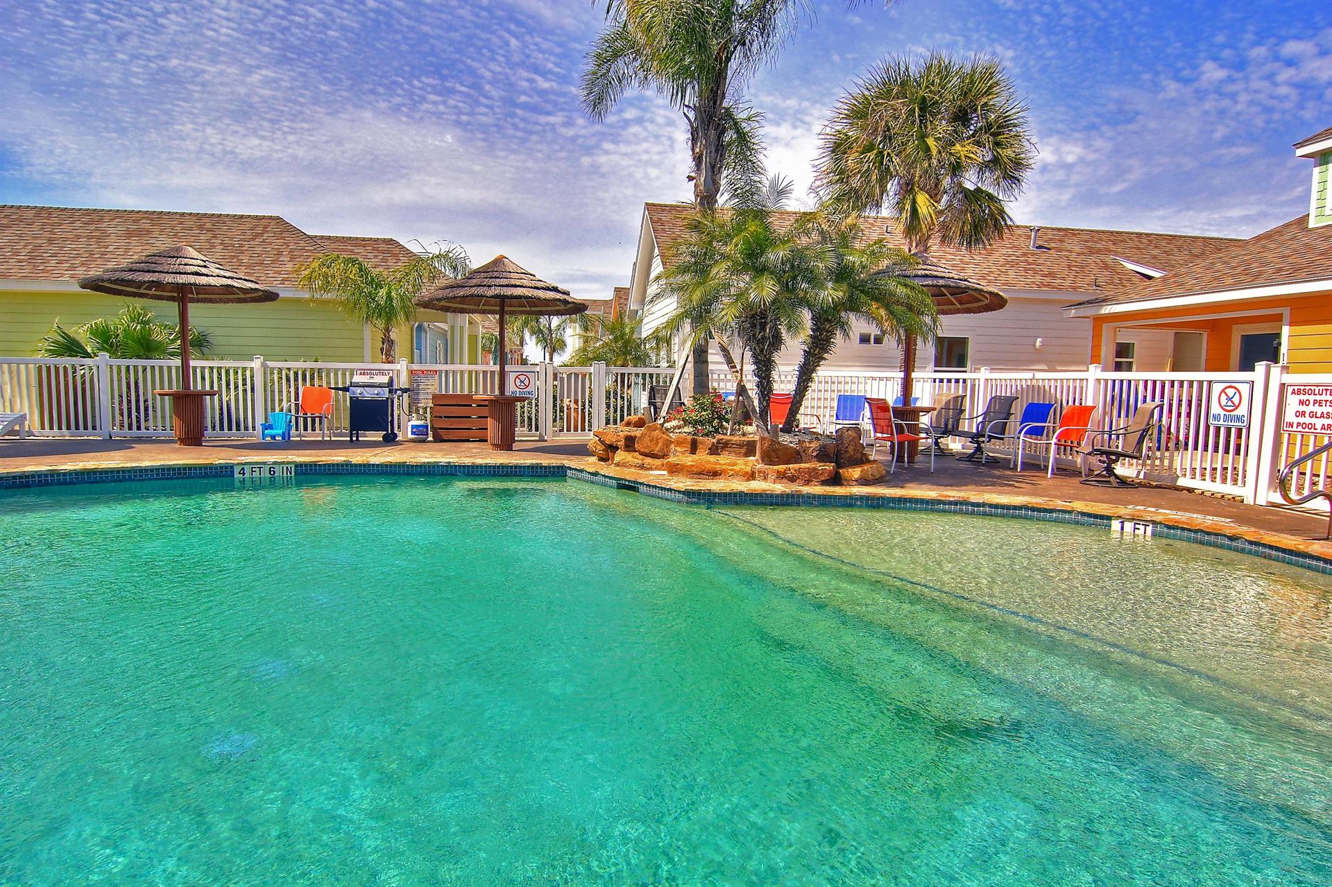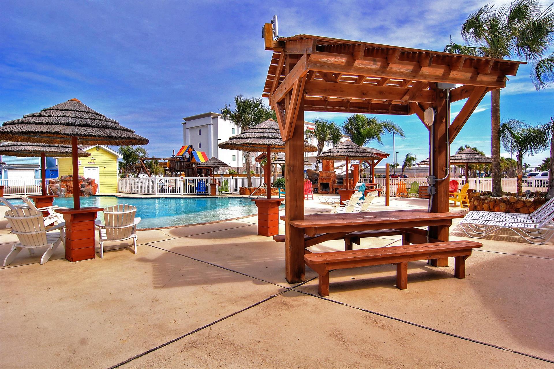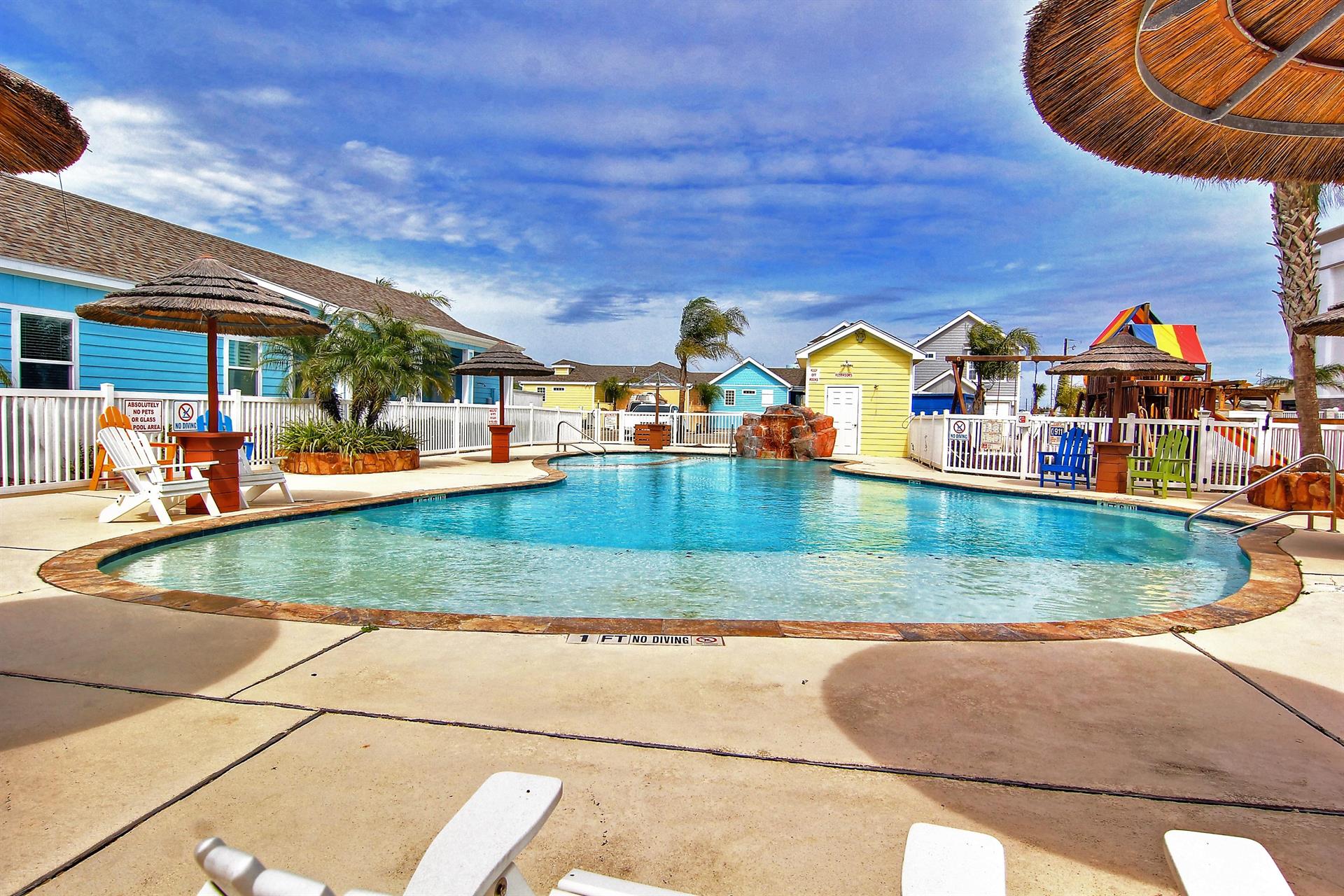 complex features 2 lagoon pools with park grills for your use and a playground