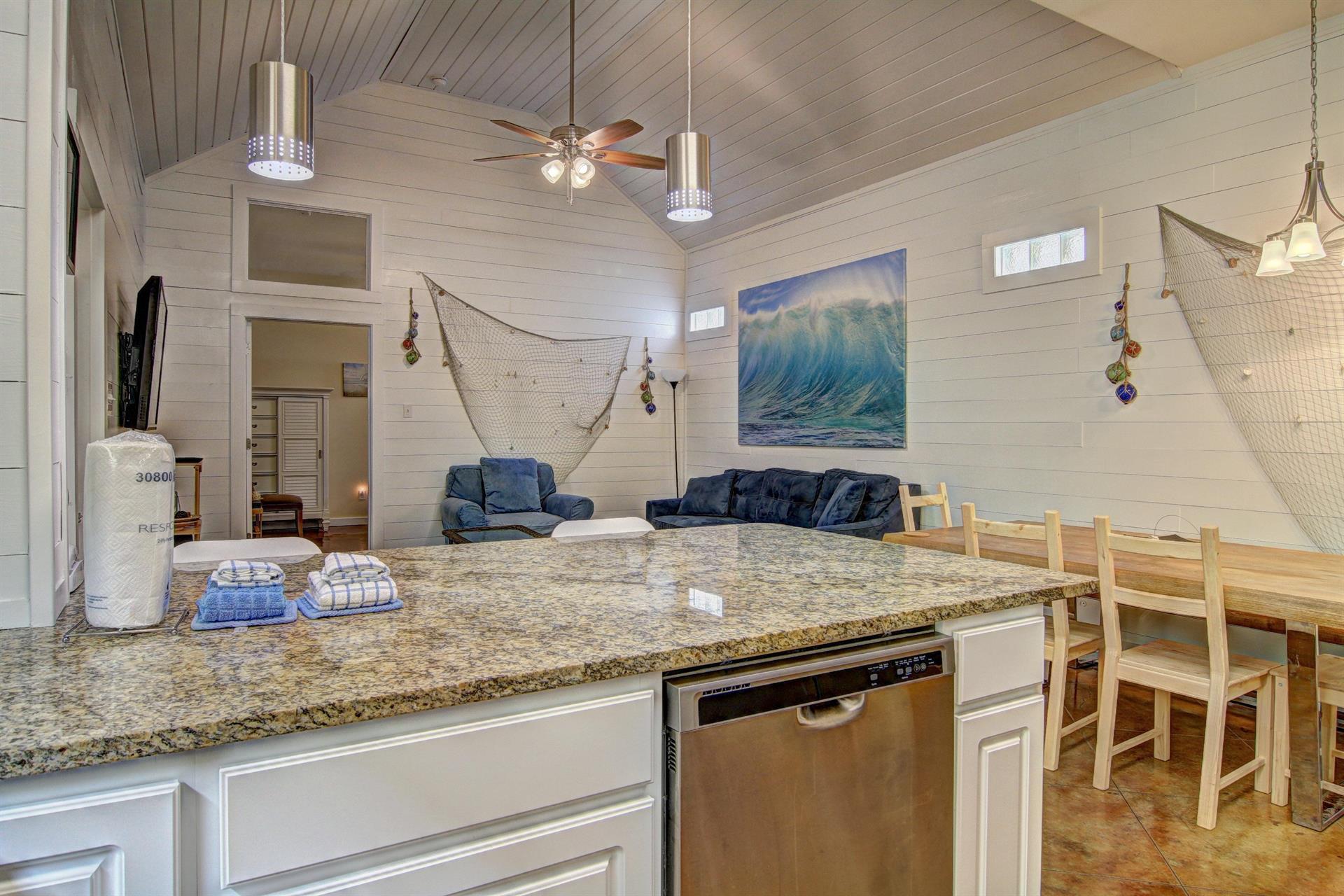 amenities in Pirates Bay. The spacious, open kitchen, dining and living area