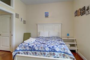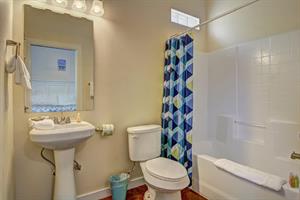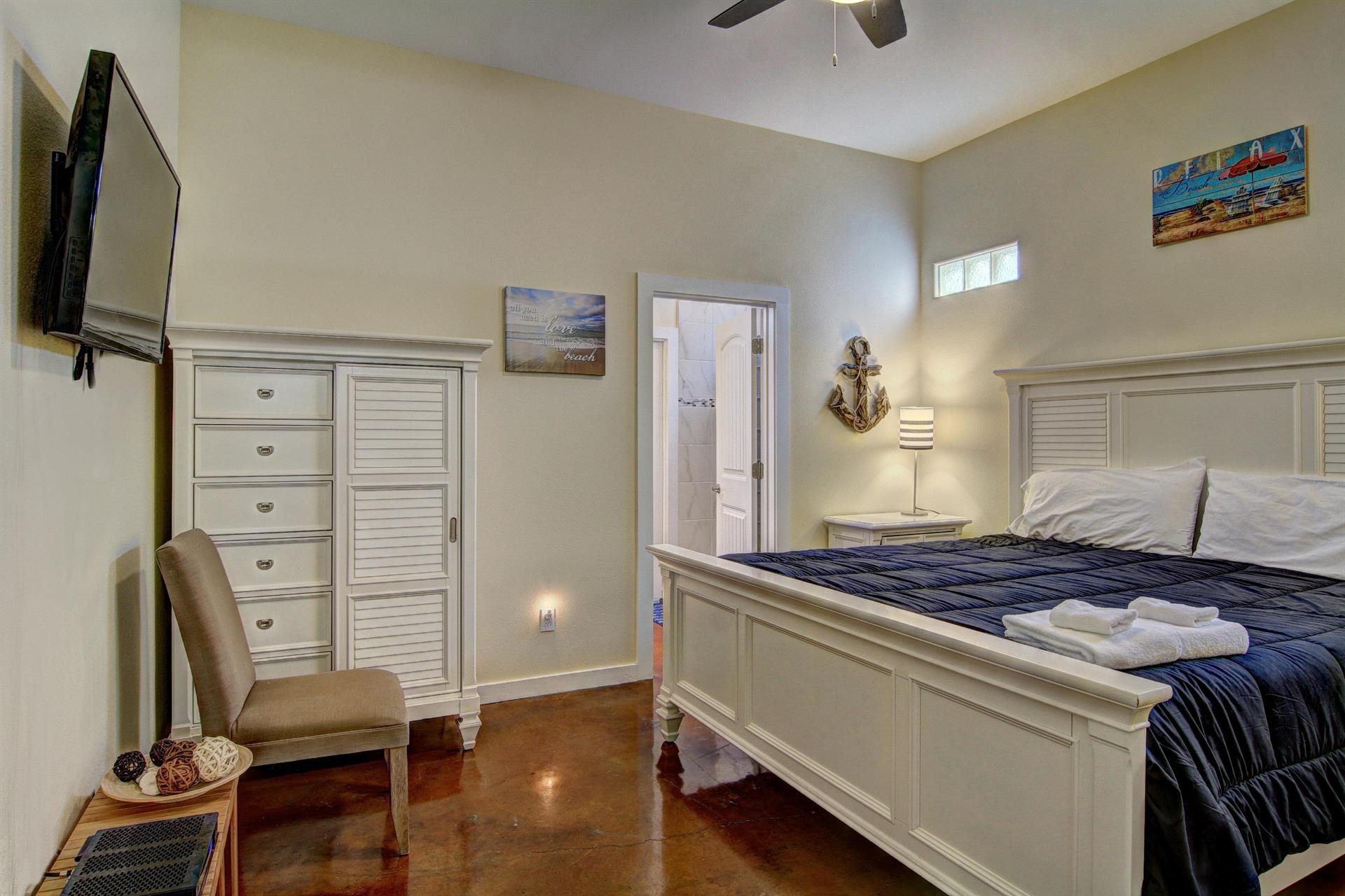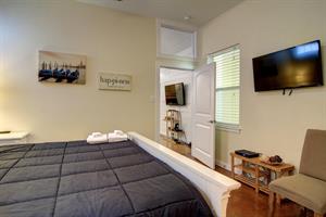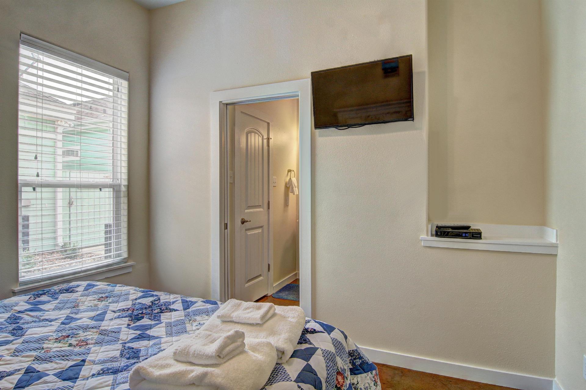 bed with a private bath and flat screen TV. The other two bedrooms both have