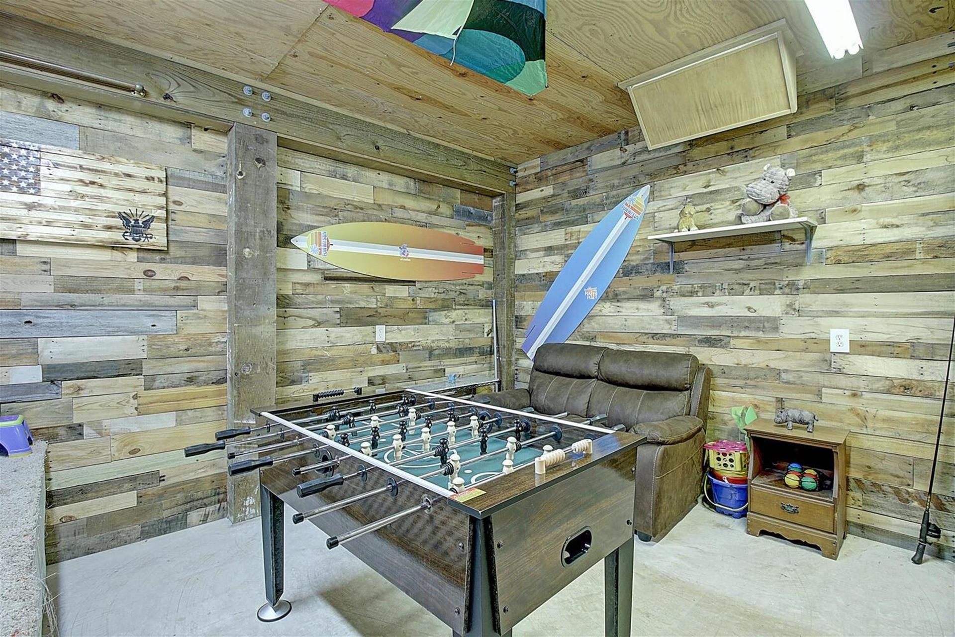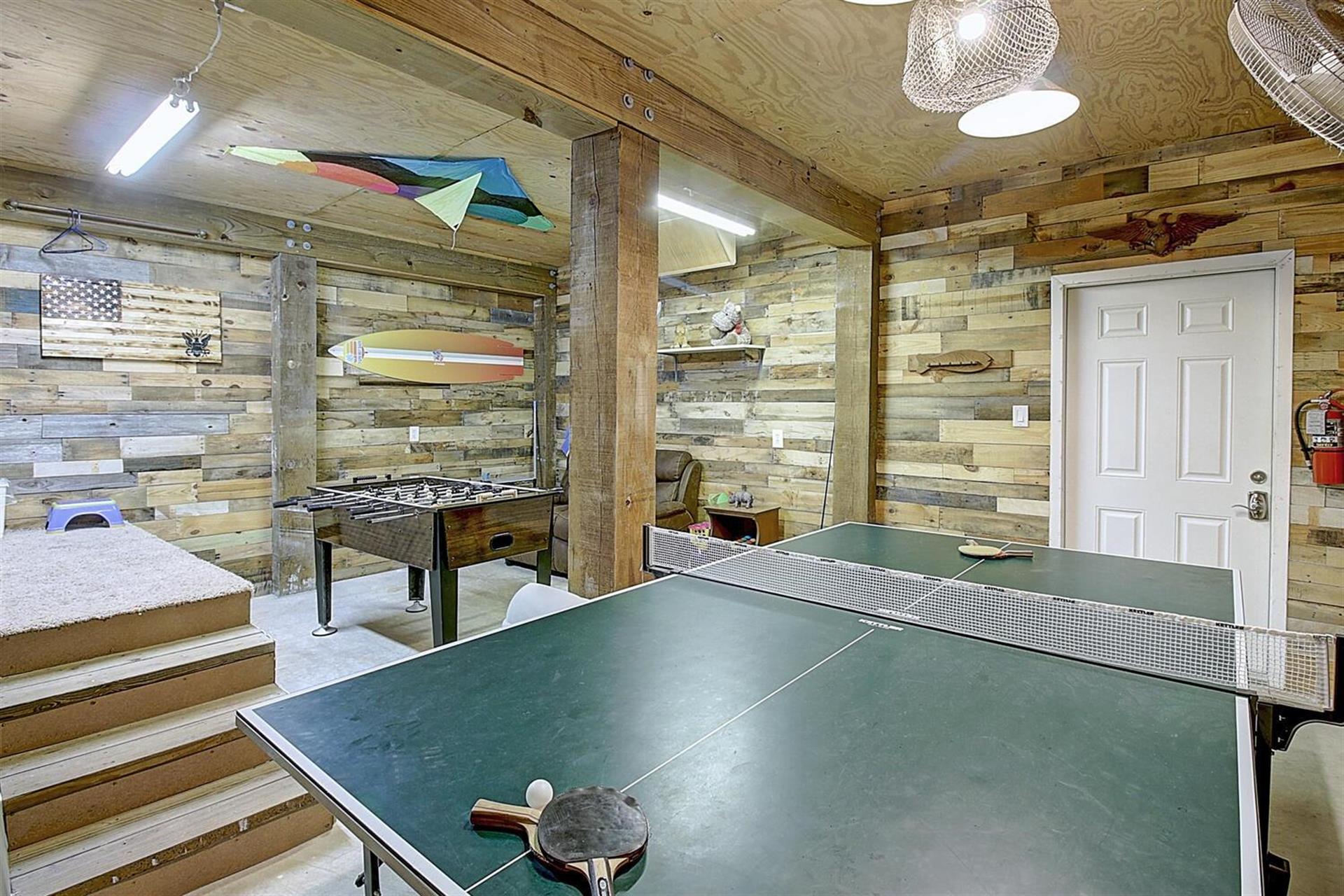 outdoor furniture and a flat screen tv. Conveniently there is also a 1/2 bath
