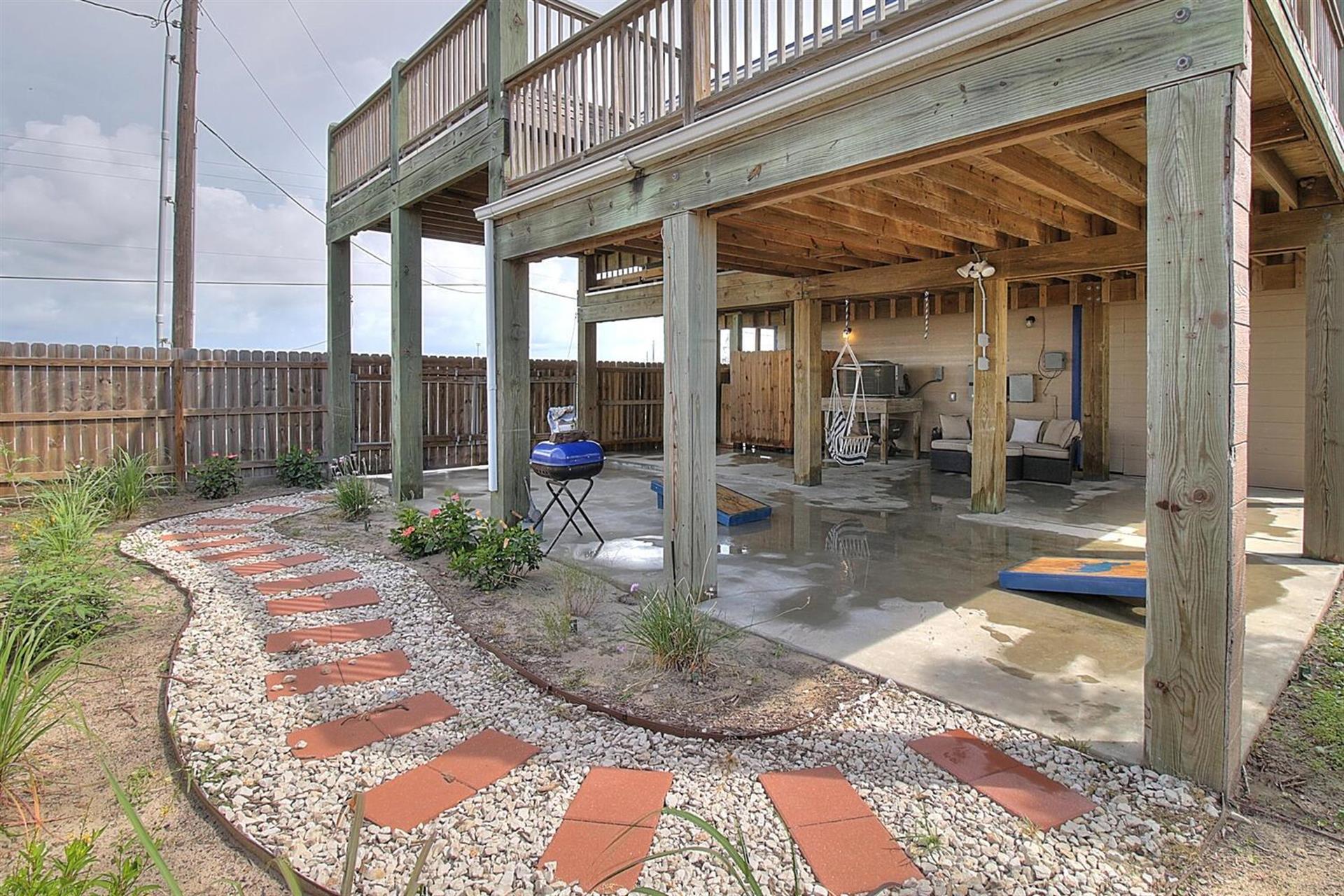 and charcoal grill located out here. There is an outdoor shower (hot and cold