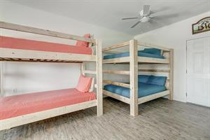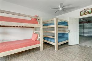Downstairs there is an expansive bunk room. You will find two sets of twin