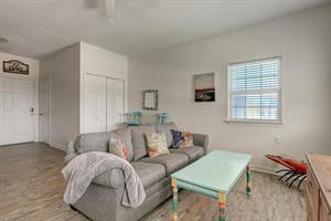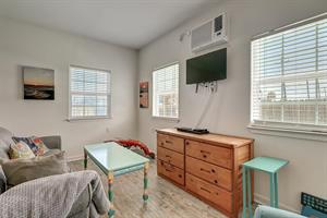 fun in its' decor. The living area contains a queen sleeper sofa. On this