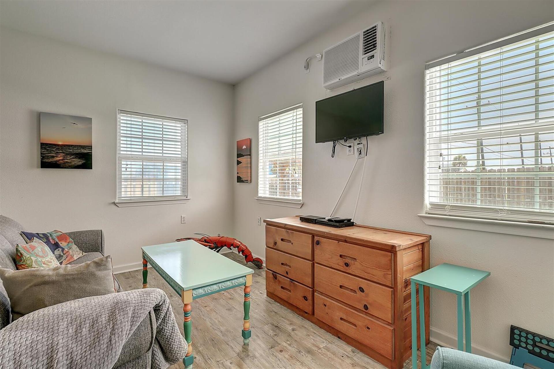 bunks and another queen sleeper sofa here. There is a sitting area with TV. No
