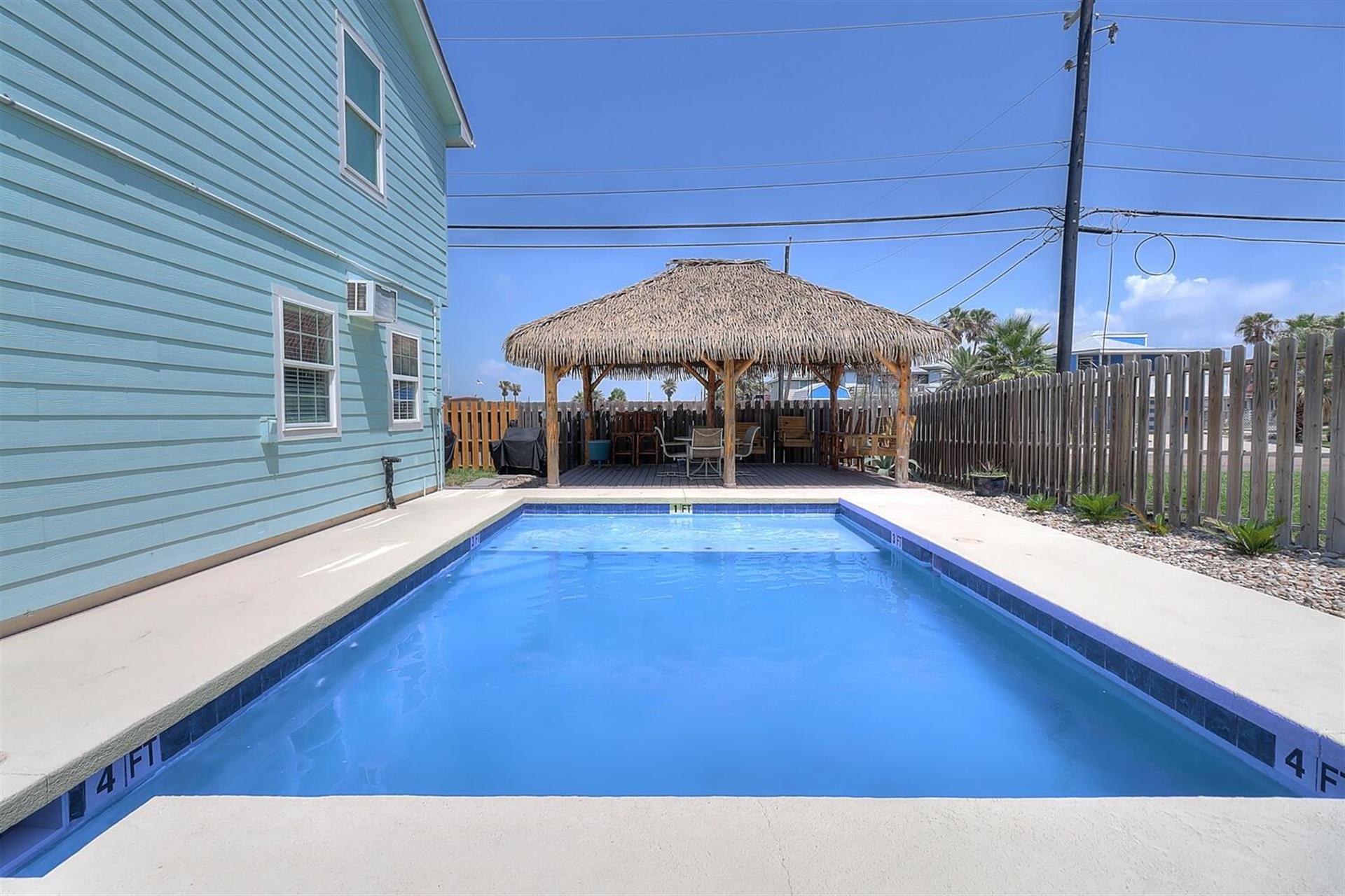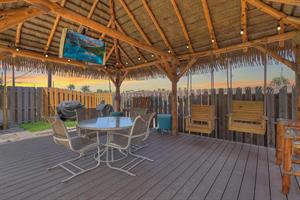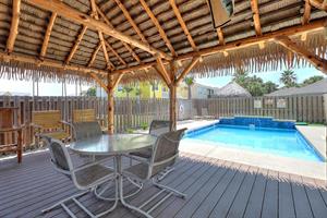 Tropical touchdown has a large, fenced backyard with a BBQ pit, perfect for